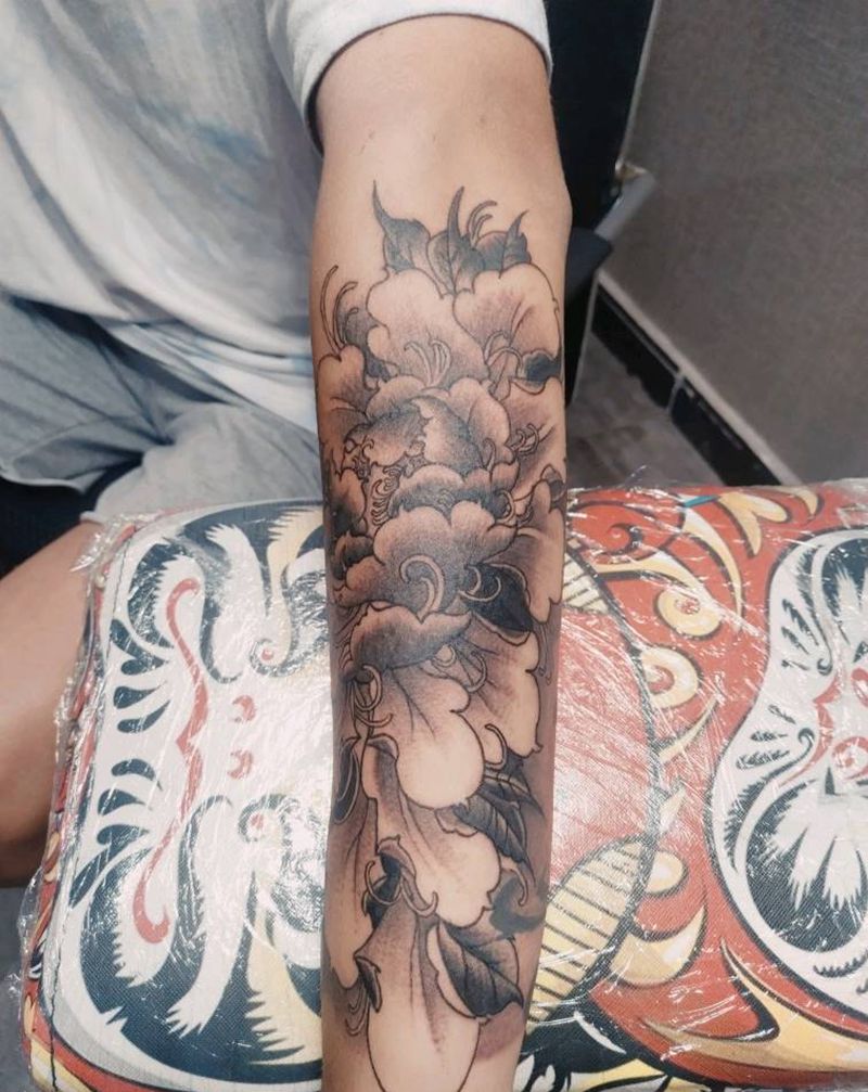 当前位置: 首页 >河南省开封市纹身店-東京刺客纹身工作室纹身图案>小臂牡丹纹身图片_手臂新传统纹身图案