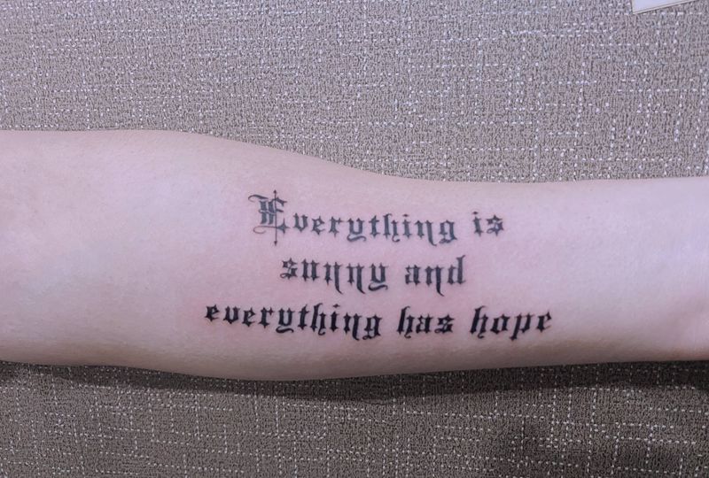 当前位置: 首页 >河南省开封市纹身店-東京刺客纹身工作室纹身图案>小臂花体字纹身图片_手臂花体字纹身图案