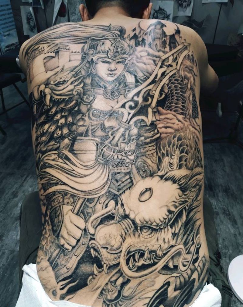 常山赵子龙纹身图片_背部新传统纹身图案