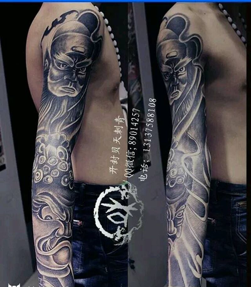 黑灰满背纹身图案