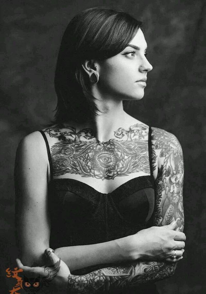 • 女性大花胸纹身_43张霸气漂亮的女性大花胸纹身图案作品