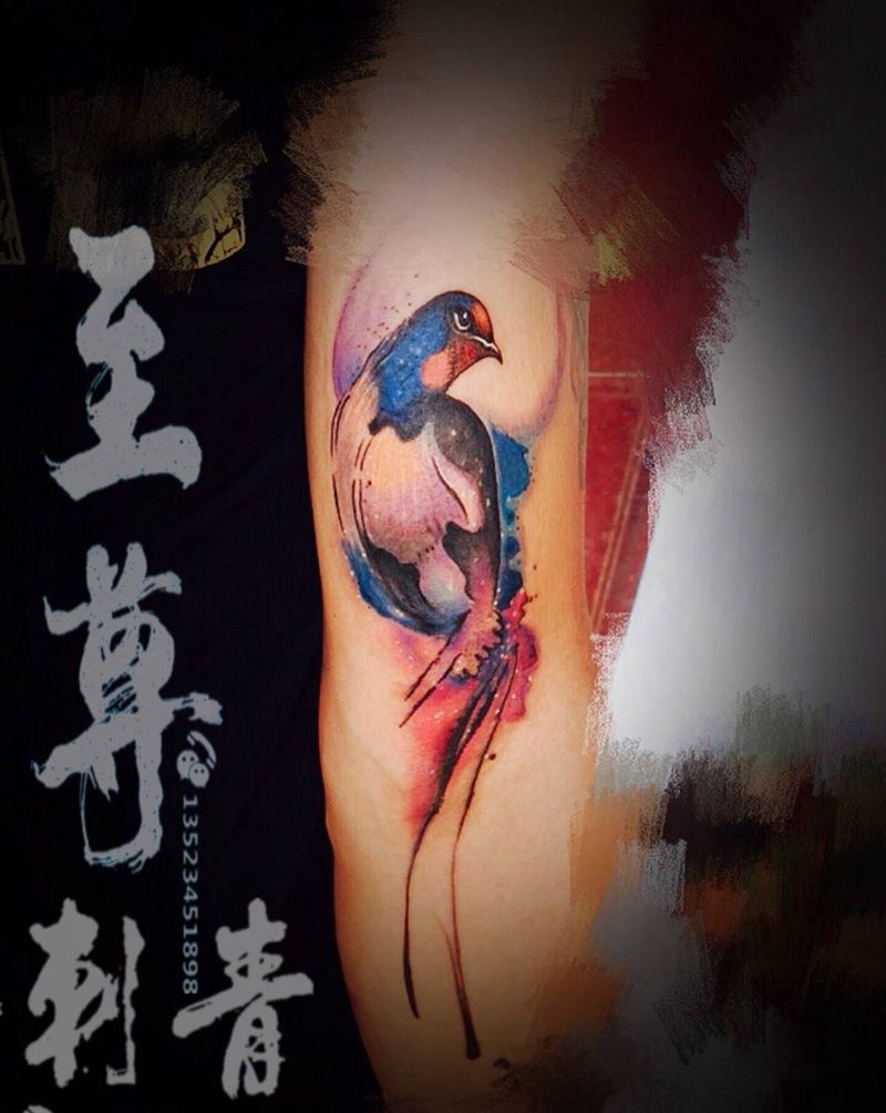 鸟纹身图片_手臂水彩纹身图案