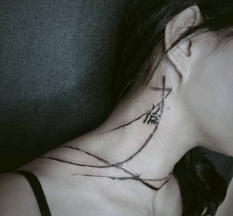 水墨风遮盖甲状腺疤痕纹身图片_颈部水墨纹身图案