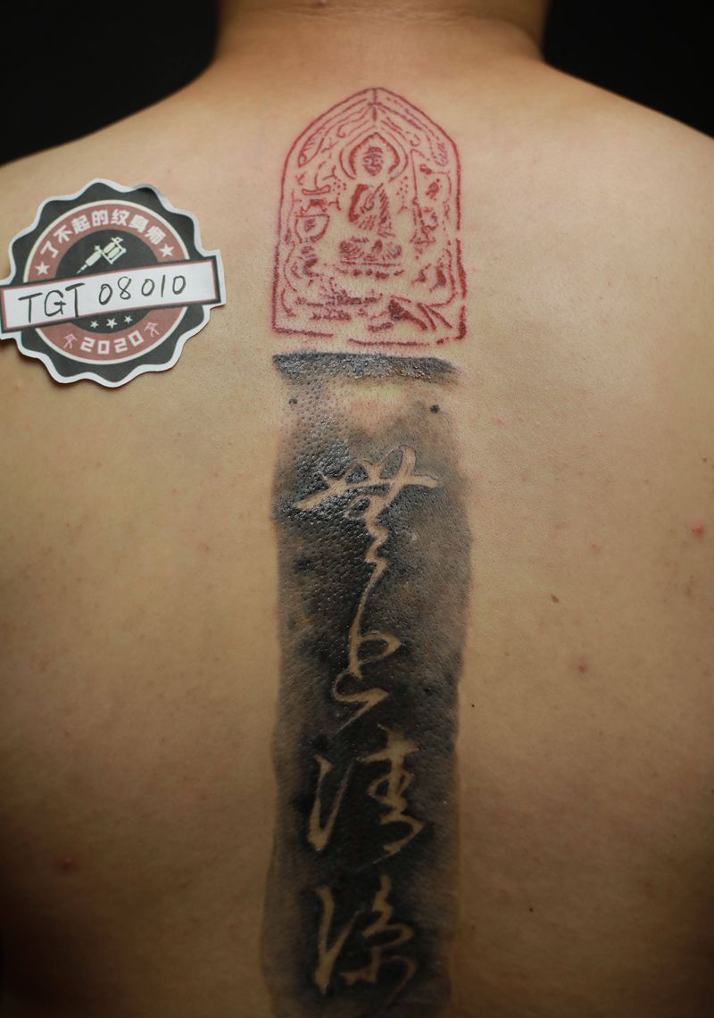 无上清凉纹身图片_背部水墨佛像书法拓片纹身图案