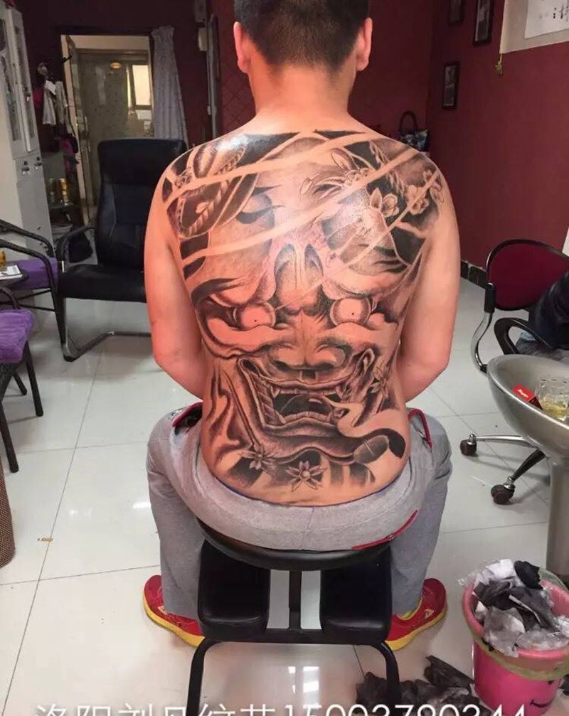 黑灰满背纹身图案