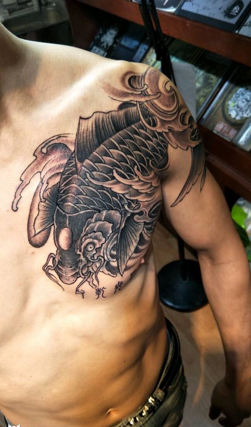 过肩鱼遮盖纹身图片