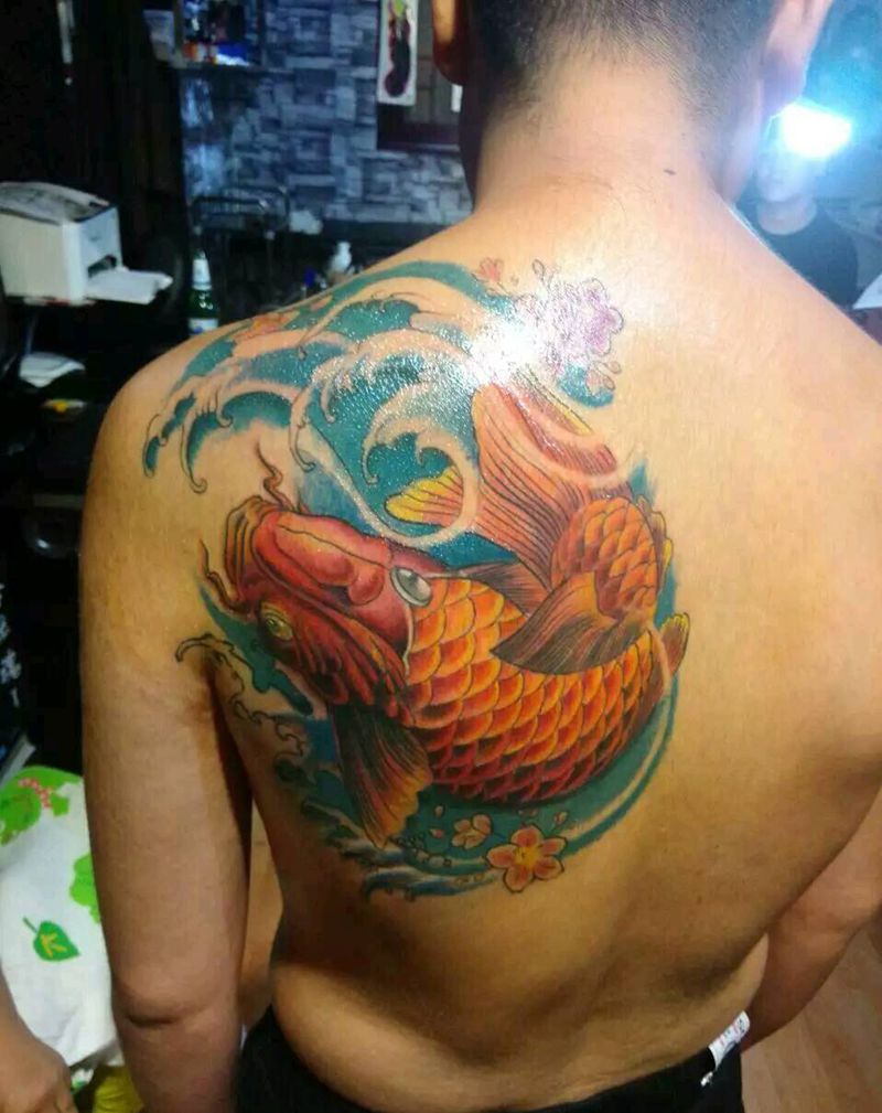 彩色鱼纹身图片_肩部传统动物成品纹身图案