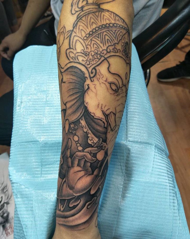 当前位置: 首页 >河南省平顶山市纹身店-针悟刺青纹身图案>小臂象神纹身图片