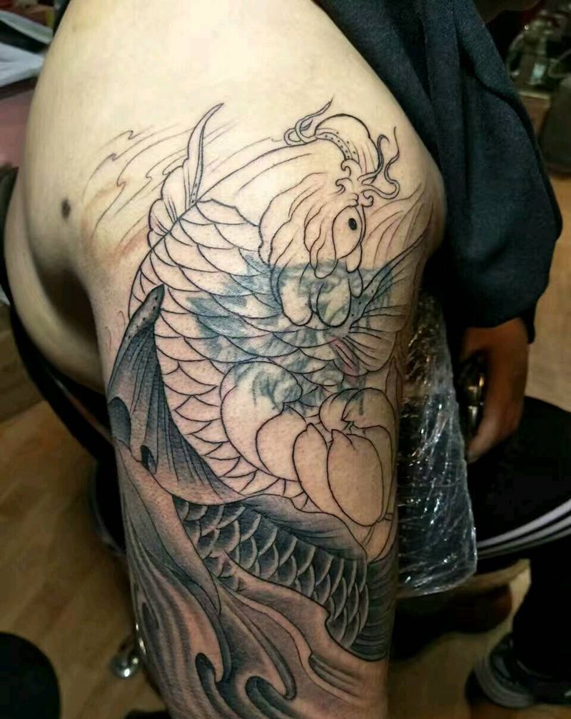 当前位置: 首页 >河南省平顶山市纹身店-针悟刺青纹身图案>大臂鱼纹身图片_手臂传统动物成品纹身图案
