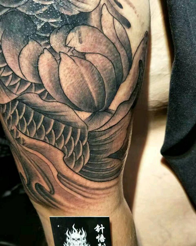 当前位置: 首页 >河南省平顶山市纹身店-针悟刺青纹身图案>大臂鱼纹身图片_手臂传统动物成品纹身图案