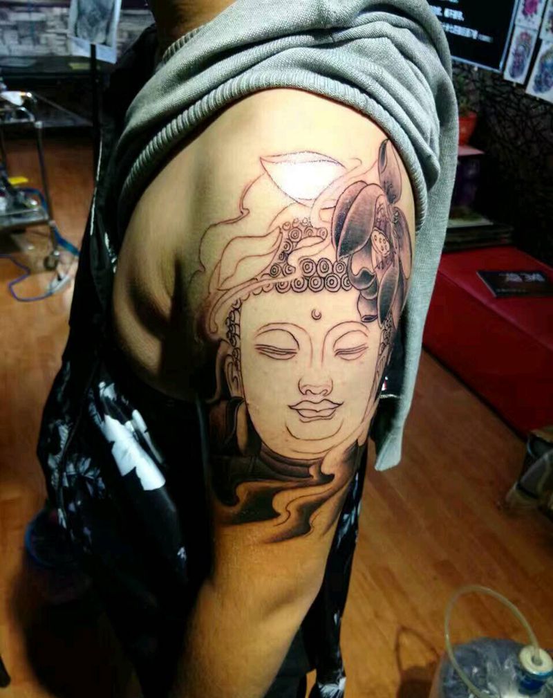 大臂佛,两次做完纹身图片_手臂传统人物成品纹身图案
