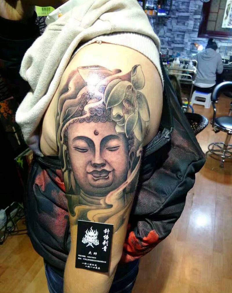 大臂佛,两次做完纹身图片_手臂传统人物成品纹身图案