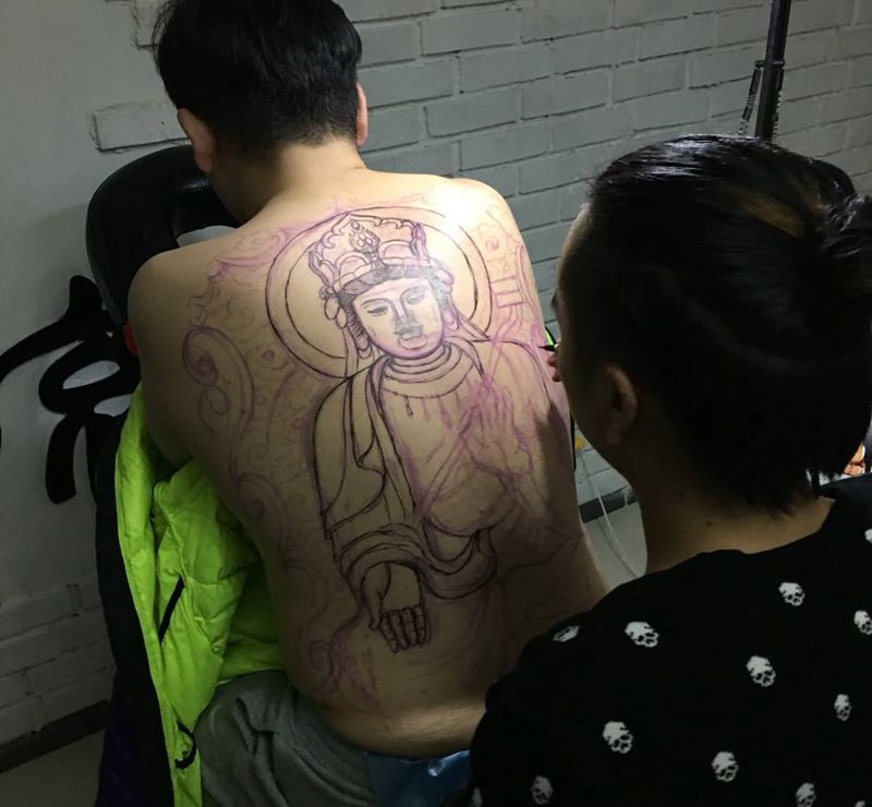 当前位置: 首页 >河南省洛阳市纹身店-午夜刺客纹身纹身图案>石窟文殊纹身图片