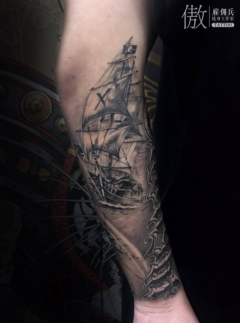 当前位置: 首页 >河南省洛阳市纹身店-Y刺青纹身工作室纹身图案>包小臂纹身图片_手臂欧美写实指南针帆船钢笔纹身图案
