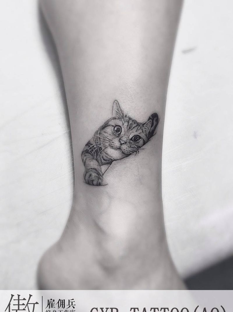 小猫纹身图片_脚部欧美写实点刺猫纹身图案