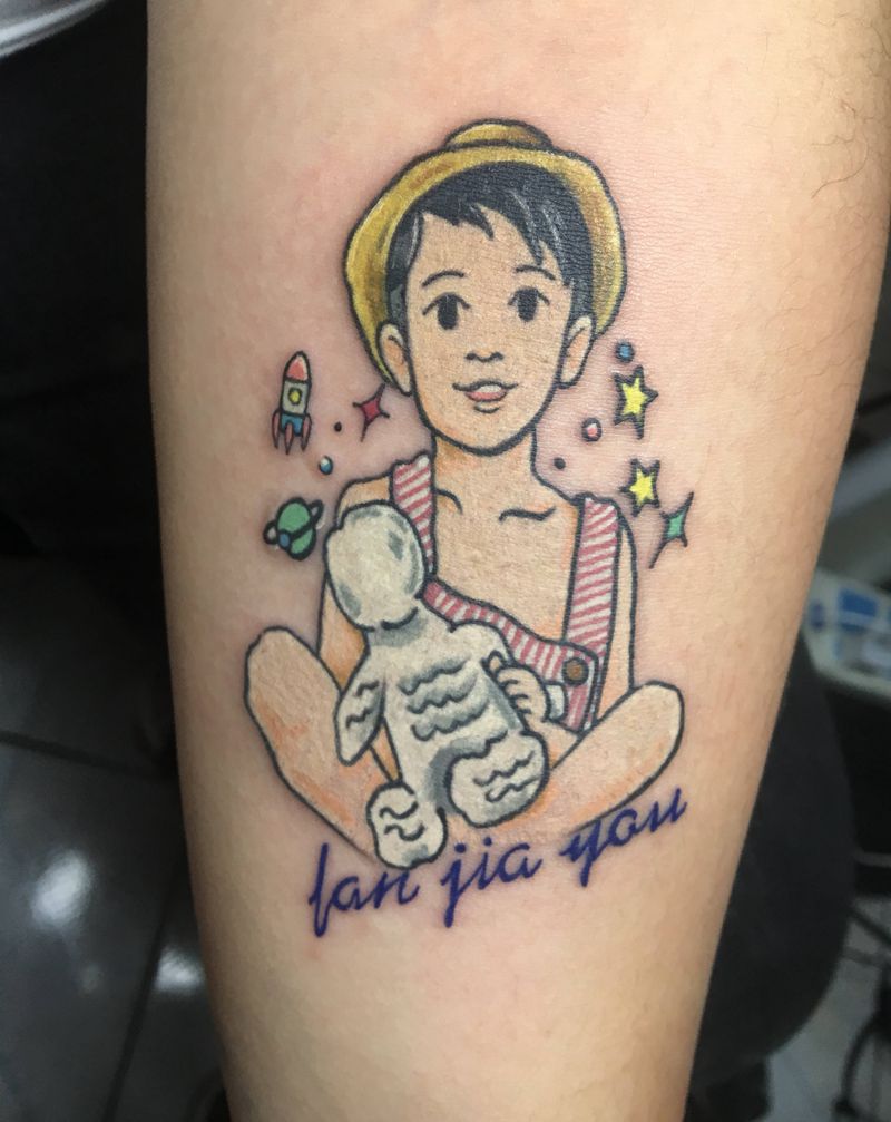 当前位置: 首页 >河南省平顶山市纹身店-正我刺青工作室纹身图案>照片变卡通纹身图片_手臂New School卡通人物纹身图案