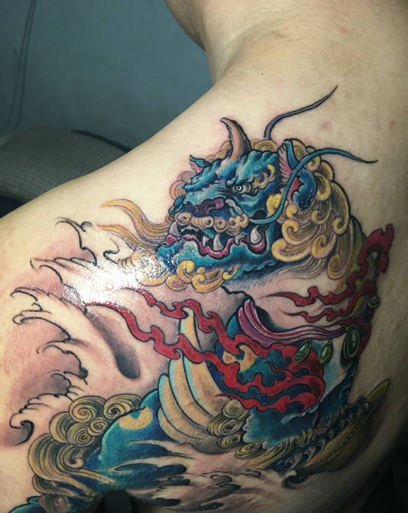 • T网红王老大花腿龙纹身图片_腿部新传统纹身图案