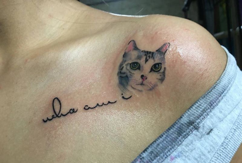 当前位置: 首页 >河南省平顶山市纹身店-正我刺青工作室纹身图案>锁骨上的猫咪纹身图片