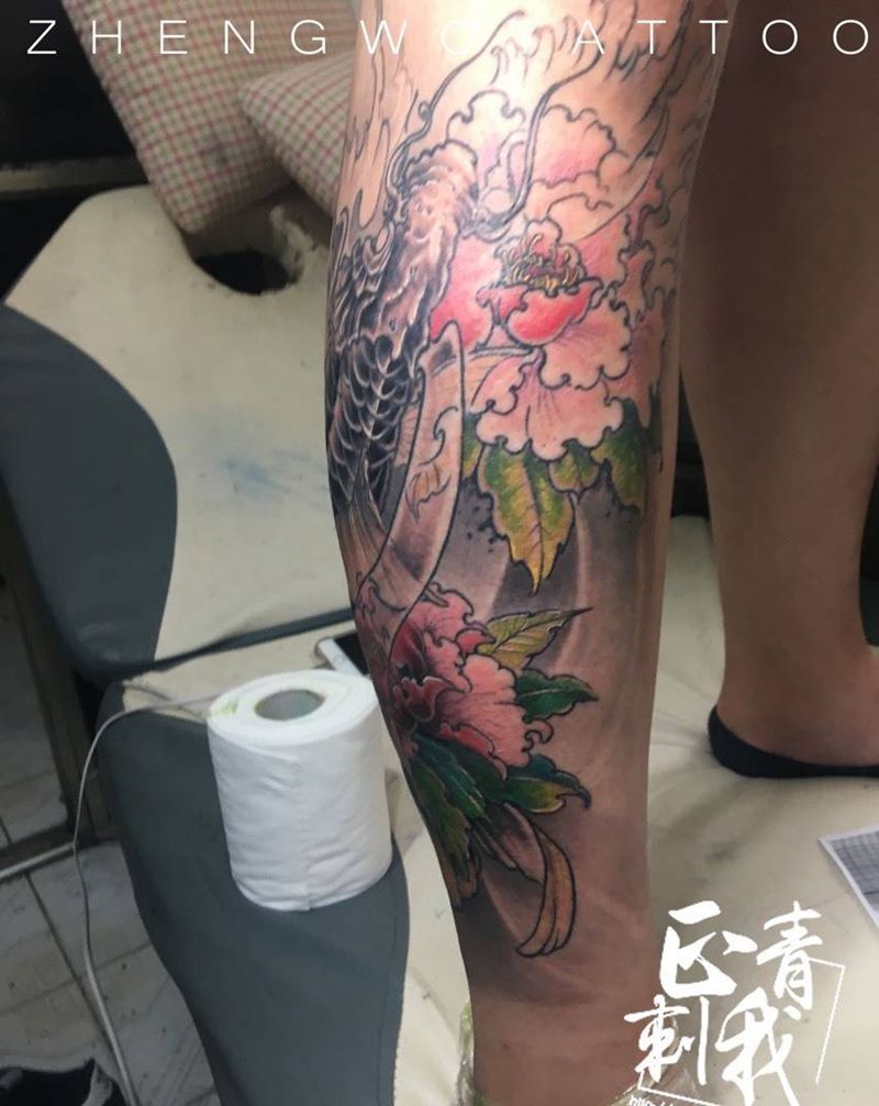 当前位置: 首页 >河南省平顶山市纹身店-正我刺青工作室纹身图案>小腿鲤鱼纹身图片