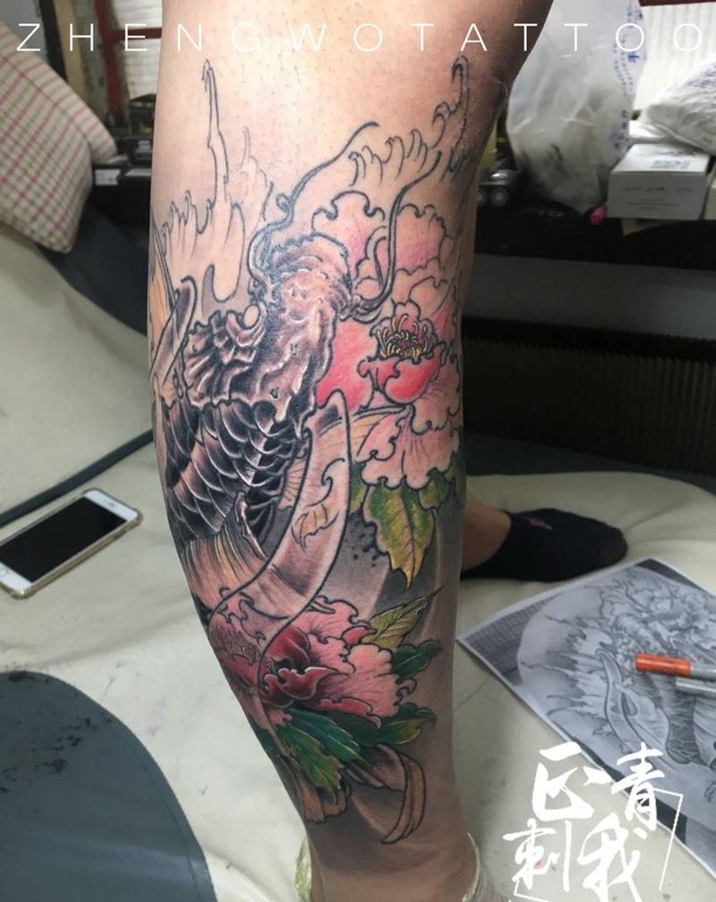 当前位置: 首页 >河南省平顶山市纹身店-正我刺青工作室纹身图案>小腿鲤鱼纹身图片