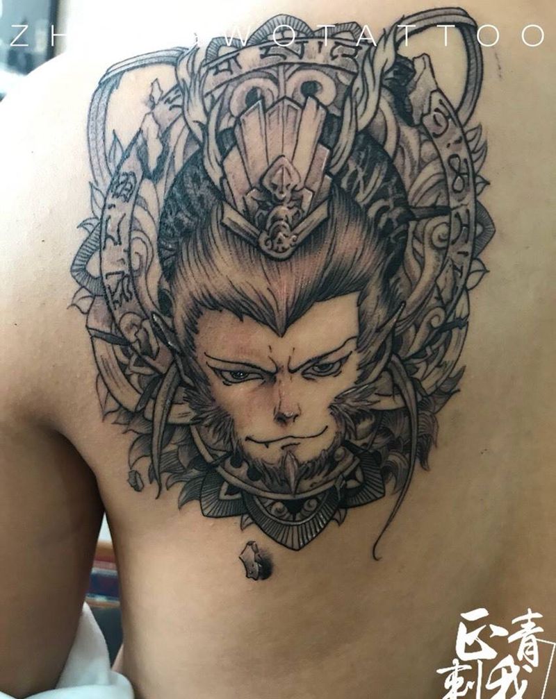 大圣纹身图片_肩部背部手臂腿部清新肖像习俗人物平顶山纹身图案