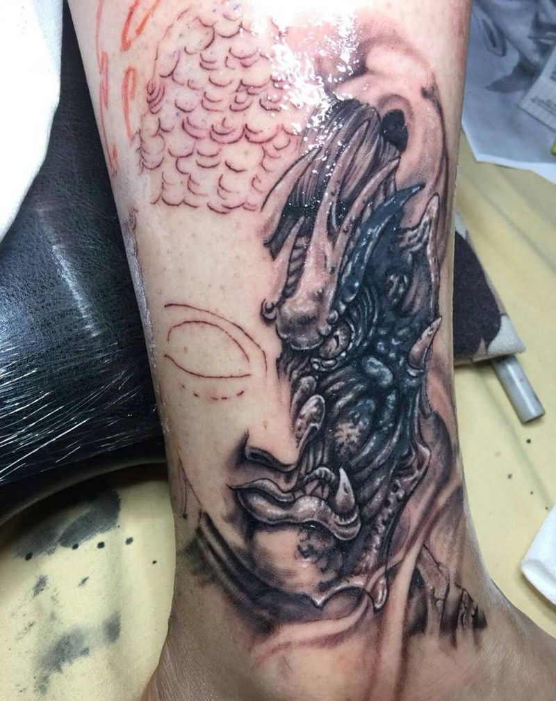 当前位置: 首页 >河南省平顶山市纹身店-正我刺青工作室纹身图案>佛魔纹身图片_腿部肖像写实传统习俗人物鬼神原创宗教遮盖纹身图案