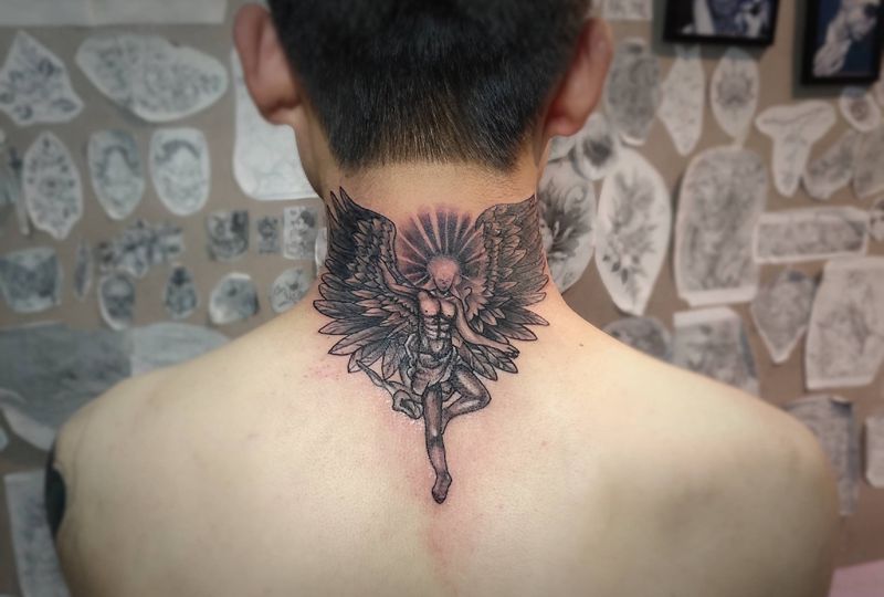 当前位置: 首页 >河南省安阳市纹身店-梦刺青纹身图案>炽天使纹身图片_颈部纹身图案
