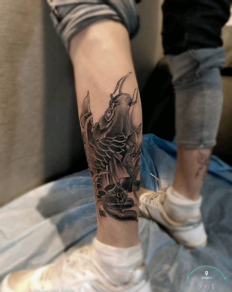 红烧大鲤鱼纹身图片_腿部新传统纹身图案