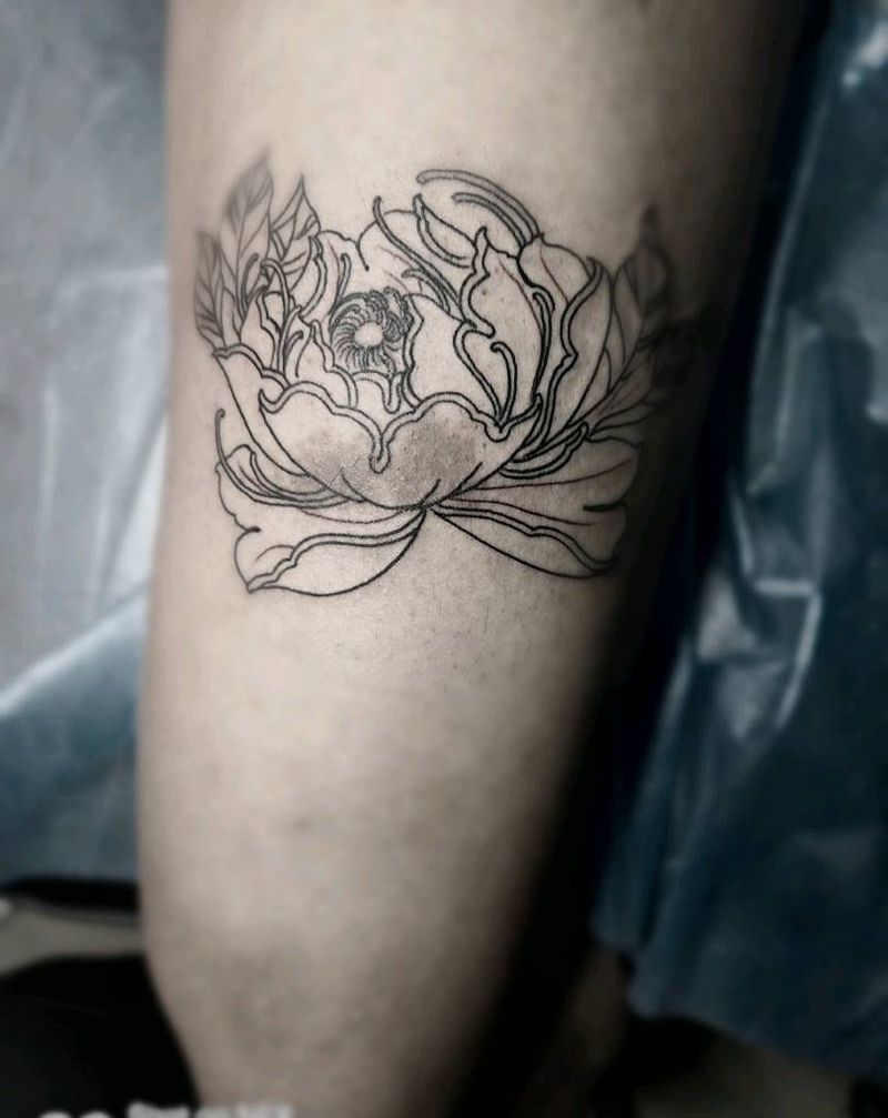 • T网红王老大花腿龙纹身图片_腿部新传统纹身图案