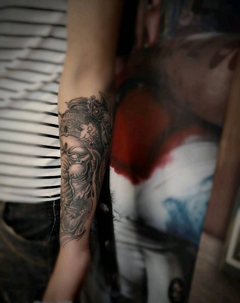 小臂内侧遮盖 外侧象神纹身图片_手臂纹身图案