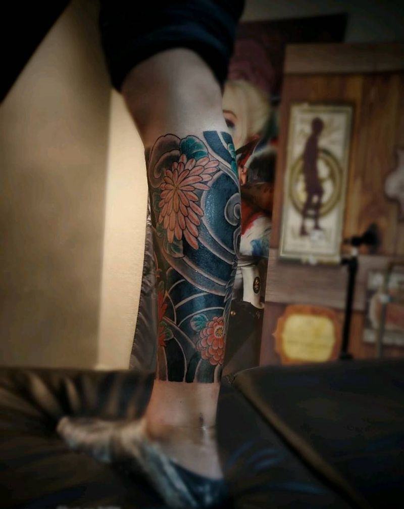 • T网红王老大花腿龙纹身图片_腿部新传统纹身图案
