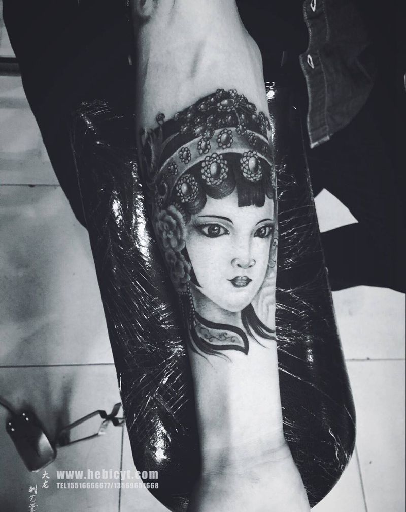 花旦纹身图片_成品手臂肖像人物纹身图案