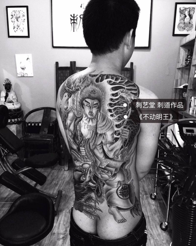 当前位置: 首页 >河南省鹤壁市纹身店-刺艺堂—刺道纹身图案>不动明王纹身图片