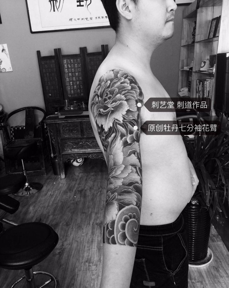 当前位置: 首页 >河南省鹤壁市纹身店-刺艺堂—刺道纹身图案>传统牡丹花臂纹身图片