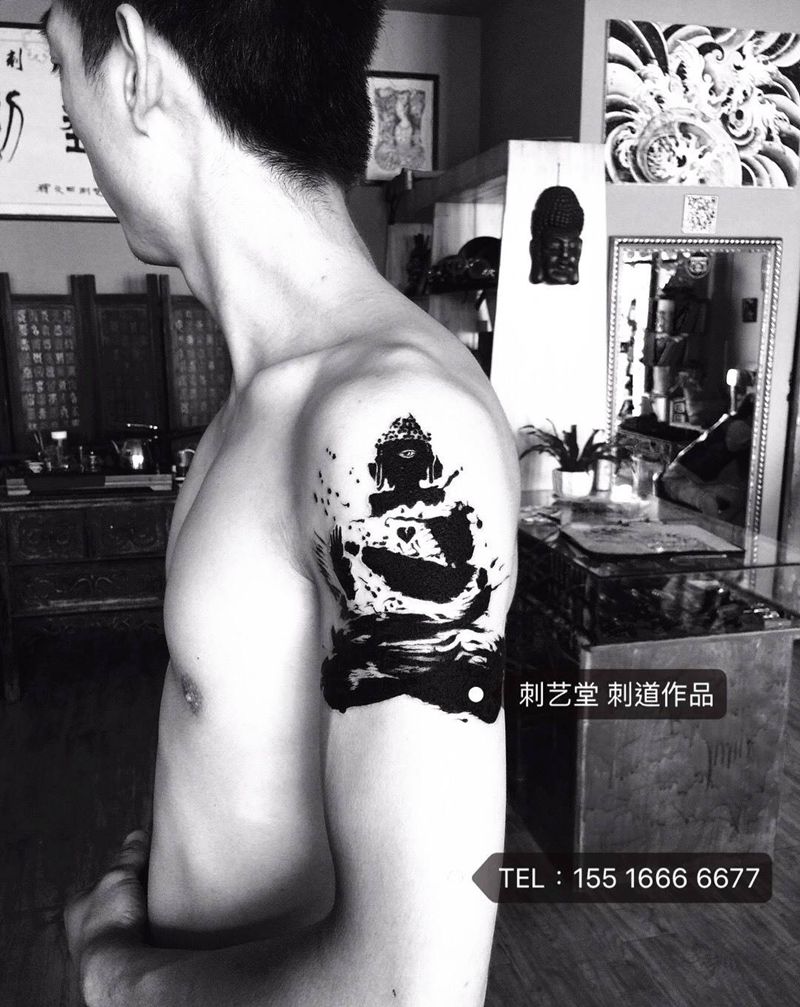 当前位置: 首页 >河南省鹤壁市纹身店-刺艺堂—刺道纹身图案>泼墨佛纹身图片