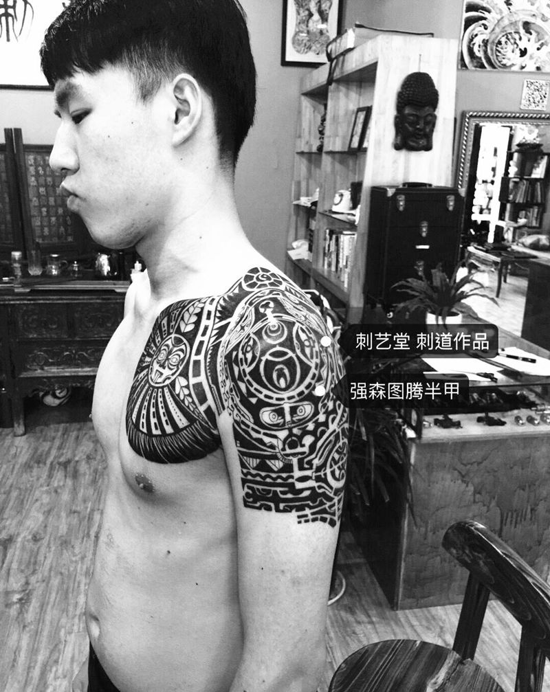 • 纹身吧推荐的披肩图腾半胛纹身图案作品展示