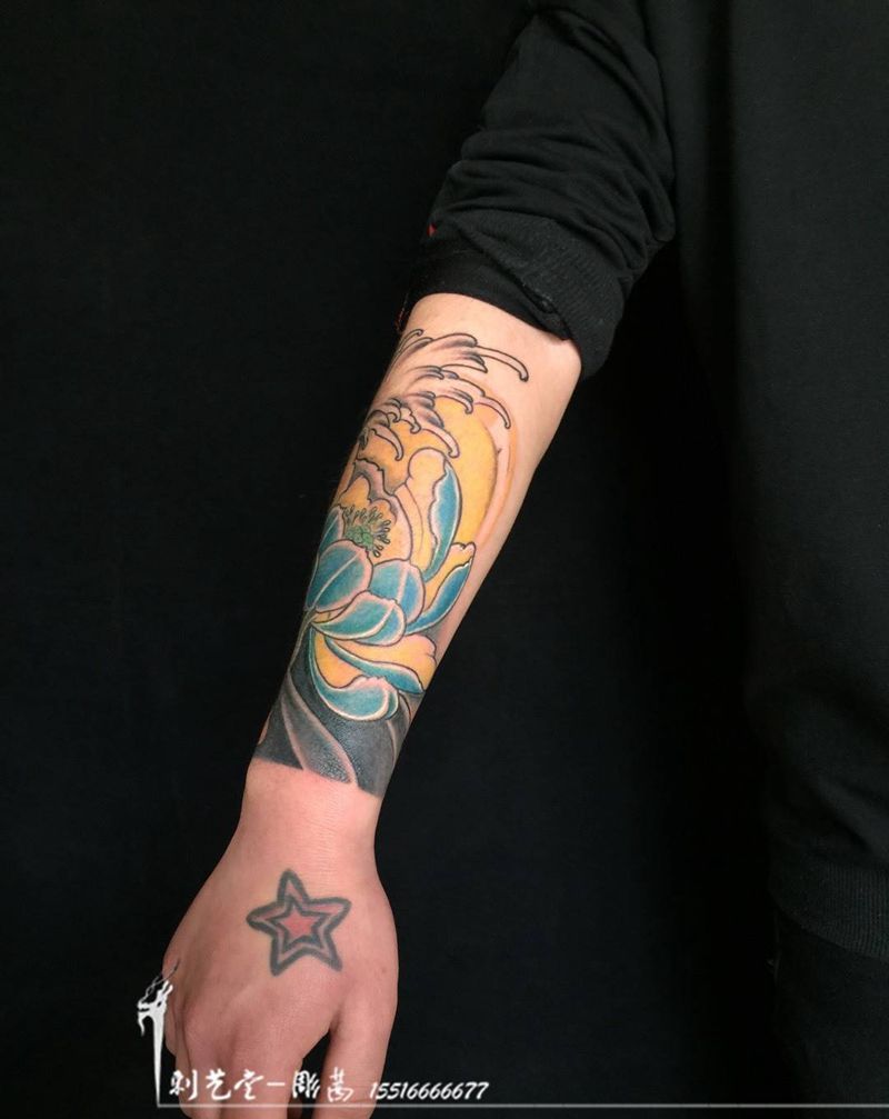 一组15张莲花纹身手