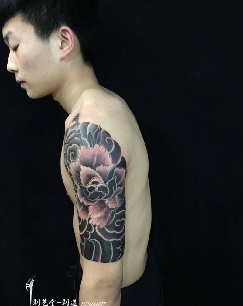 刺艺堂今日覆盖~纹身图片_成品手臂肩部传统风景原创植物习俗纹身图案