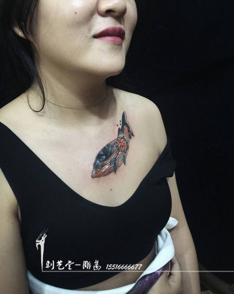 • 女性大花胸纹身_43张霸气漂亮的女性大花胸纹身图案作品