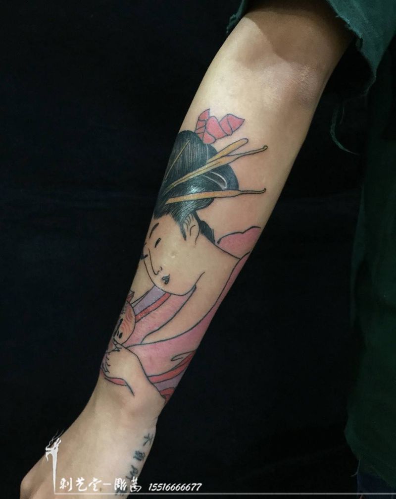 当前位置: 首页 >河南省鹤壁市纹身店-刺艺堂—刺道纹身图案>刺艺堂-彫茜作品艺妓~纹身图片