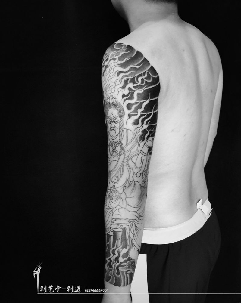 当前位置: 首页 >河南省鹤壁市纹身店-刺艺堂—刺道纹身图案>不动尊者花臂纹身图片
