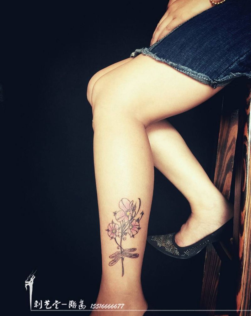 • T网红王老大花腿龙纹身图片_腿部新传统纹身图案