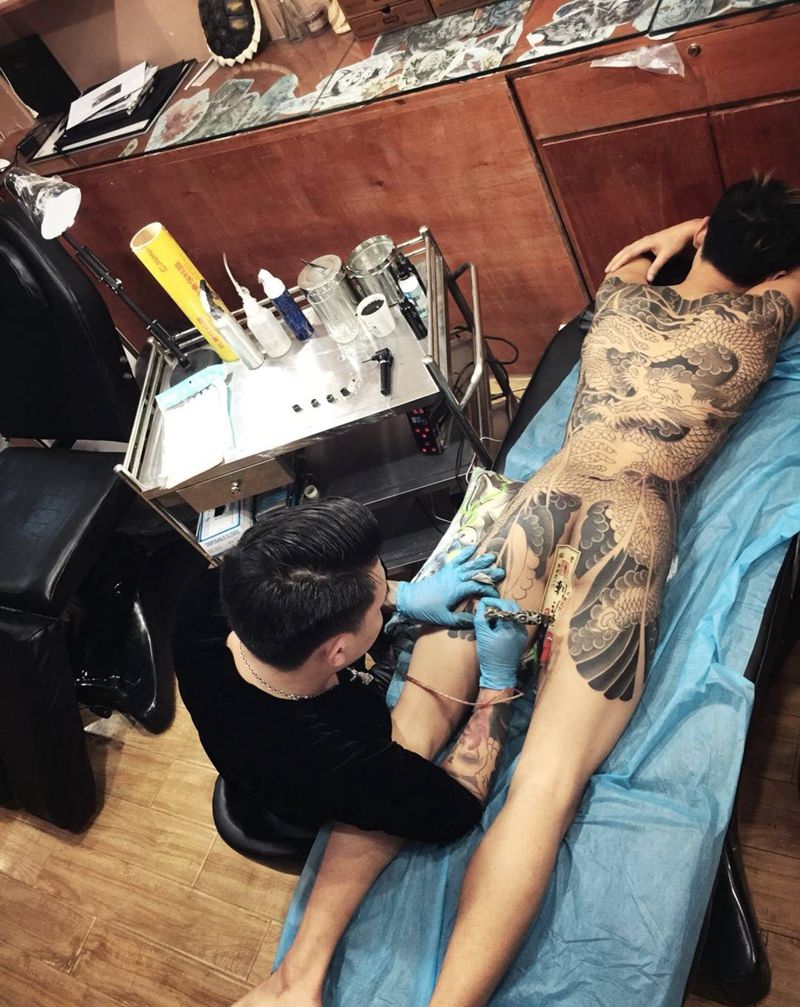 • T网红王老大花腿龙纹身图片_腿部新传统纹身图案