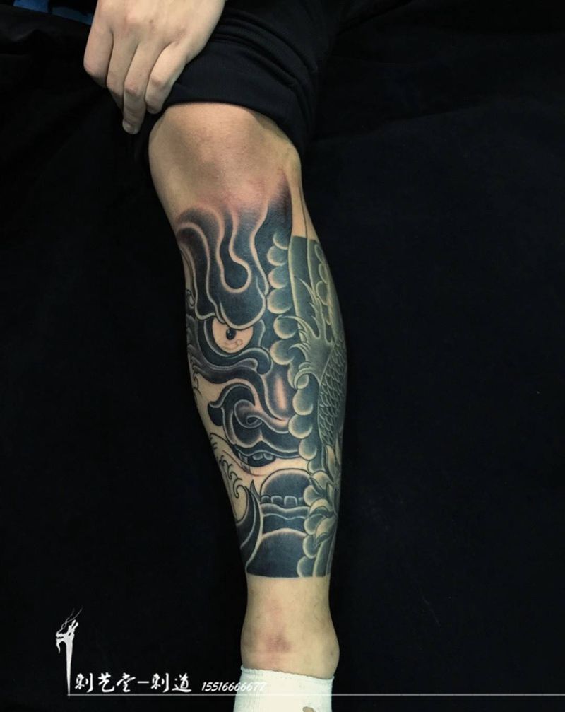 • T网红王老大花腿龙纹身图片_腿部新传统纹身图案