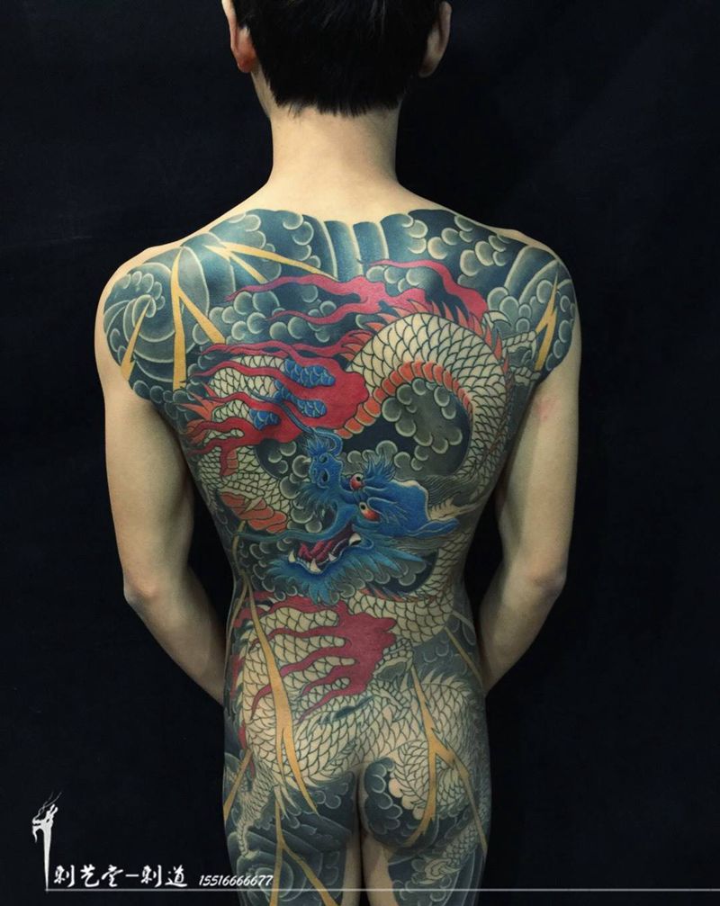 • T云龙九郎纹身图片_背部老传统云龙九郎纹身图案