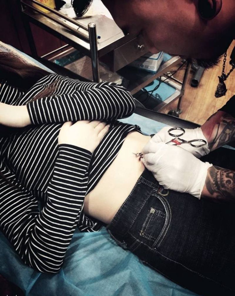 当前位置: 首页 >河南省鹤壁市纹身店-刺艺堂—刺道纹身图案>扎完后背 扎一脐钉~纹身图片