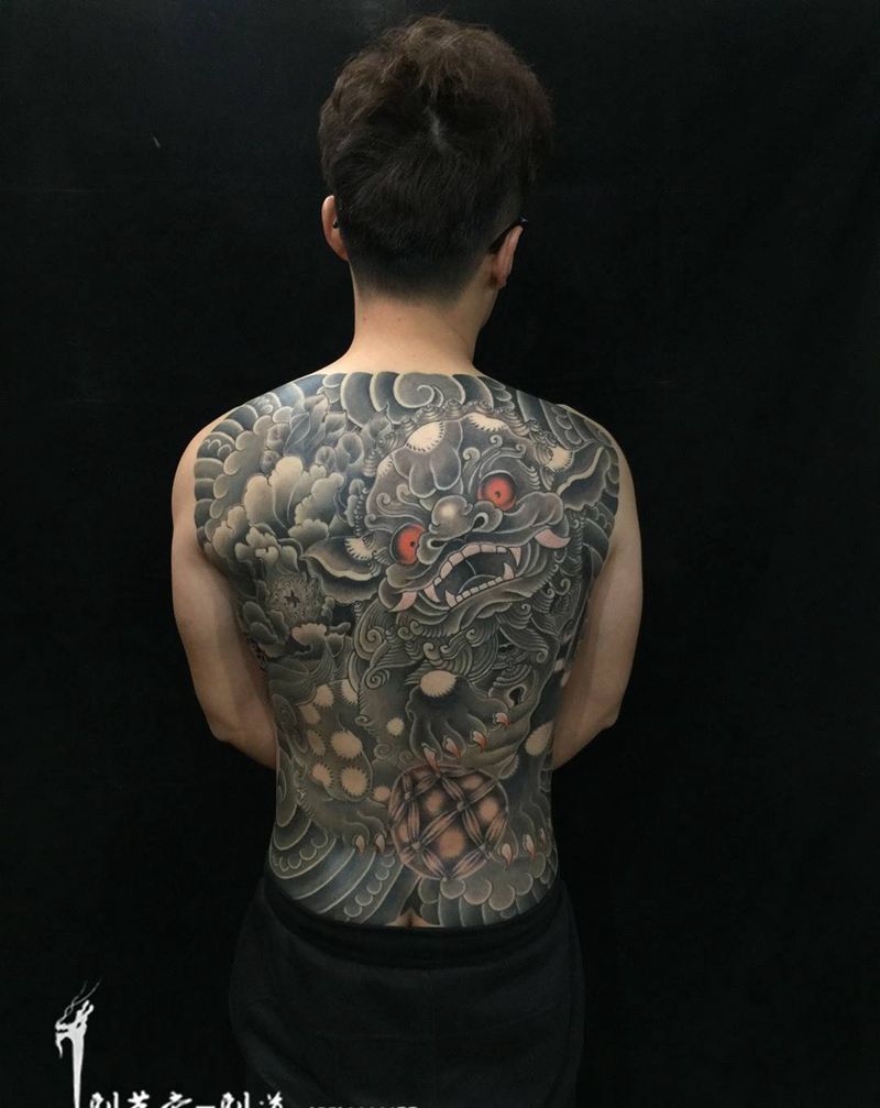 当前位置: 首页 >河南省鹤壁市纹身店-刺艺堂—刺道纹身图案>为17年收工纹身图片_成品背部臀部传统习俗鬼神动物原创宗教国画纹身图案