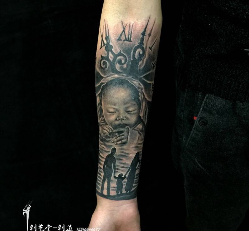 • T家庭图,一家四口生日纪念!纹身图片_手臂纹身图案