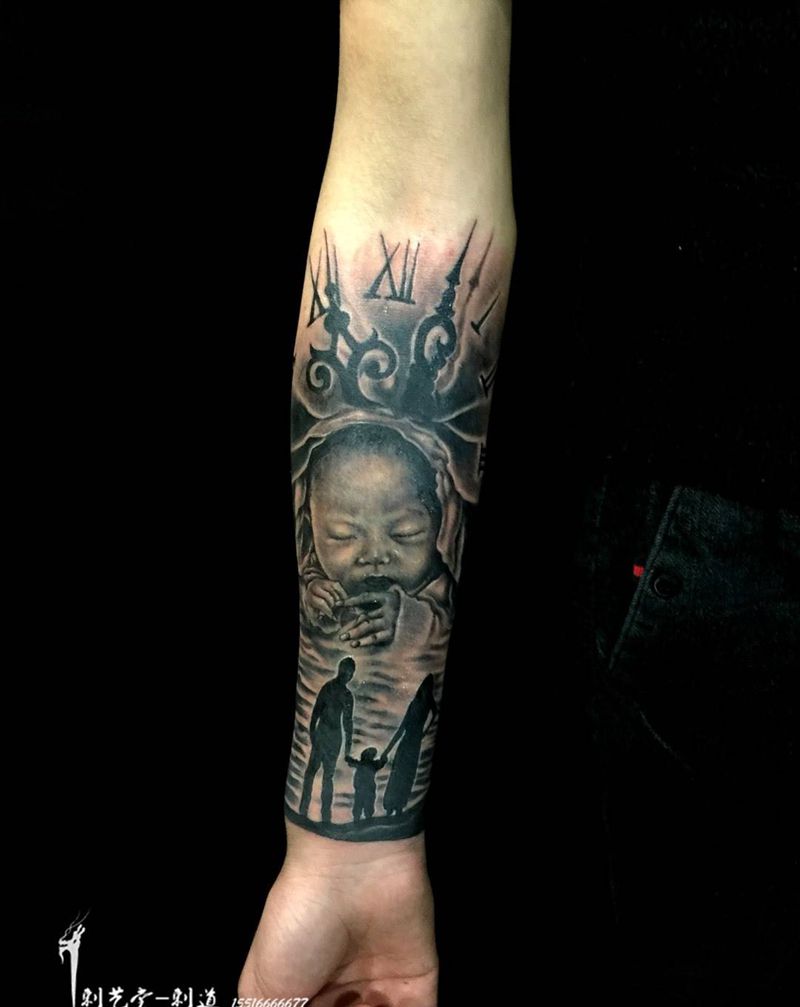 • T家庭图,一家四口生日纪念!纹身图片_手臂纹身图案