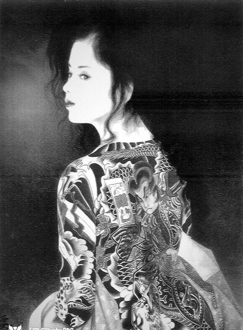 黑灰满背纹身图案
